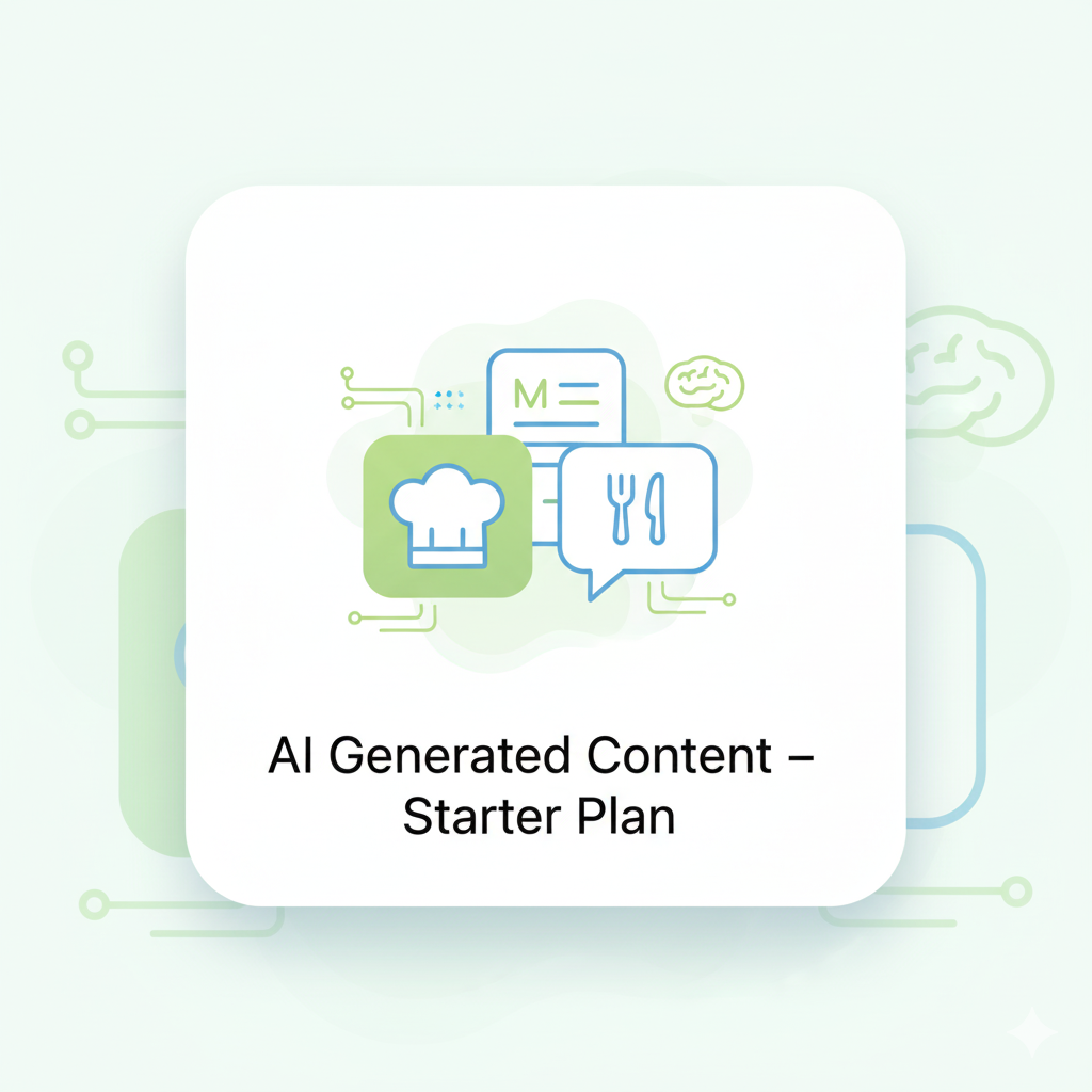 The Starter Plan provides basic AI-generated social media content for small hospitality businesses such as cafés, restaurants, and bars.